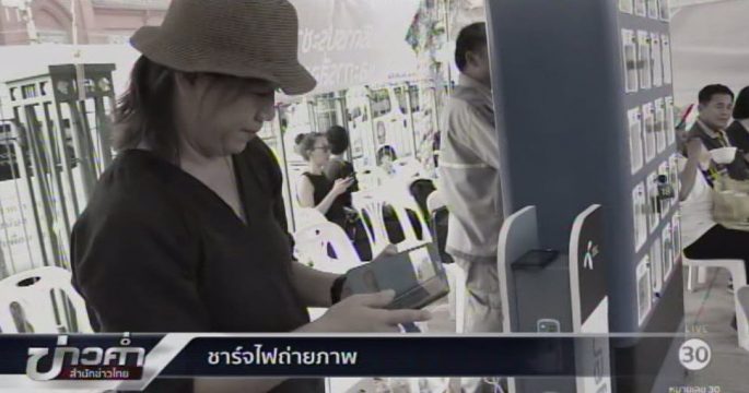 บริเวณท้องสนามหลวง ไม่ได้มีเพียงจุดให้บริการน้ำดื่มและอาหารจากจิตอาสาเท่านั้น แต่ยังมีจุดชาร์จแบตโทรศัพท์เคลื่อนที่เพื่อประชาชนที่มาสักการะพระบรมศพ ได้เก็บภาพบันทึกไว้ในความทรงจำ
