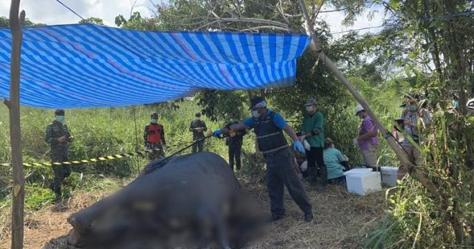 สัตวแพทย์ตัดชิ้นเนื้อซากช้างป่าล้มใกล้เขตอุทยานฯ แก่งกระจาน ส่งห้องปฏิบัติการสัตว์ป่าตรวจหาสาเหตุ เบื้องต้นสันนิษฐานป่วยติดเชื้อหรือรับสารปนเปื้อน นายอำเภอหัวหินเผยรอบบริเวณไม่พบร่องรอยการทำร้าย