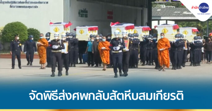 กองบิน 5 กองทัพอากาศ จัดพิธีส่งศพกำลังพล 6 นาย อย่างสมเกียรติ ท่ามกลางบรรยากาศโศกเศร้า โดยจะเคลื่อนศพไปยังฌาปนสถานกองทัพเรือ สัตหีบ เพื่อประกอบพิธีพระราชทานน้ำหลวงอาบศพ