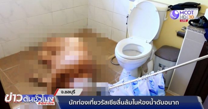 นักท่องเที่ยวชาวรัสเซีย ลื่นล้มในห้องน้ำศีรษะฟาดพื้นดับในห้องน้ำบ้านพักหรู ใน อ.สัตหีบ ชลบุรี ตำรวจสันนิษฐานสาเหตุลื่นล้มเกิดจากอาการโรคหัวใจกำเริบ
