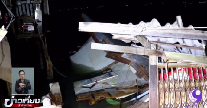 บ้านไม้อายุหลายสิบปี ริมทะเลสัตหีบ ทรุดตัวพังลงทะเล 3 ชีวิตในบ้านตะเกียกตะกายหนีพ้นความตายมาได้ มีเพียงบัณฑิตสาววัย 24 ปี ที่ตกทะเลไปกับซากปรักหักพังเสียชีวิต