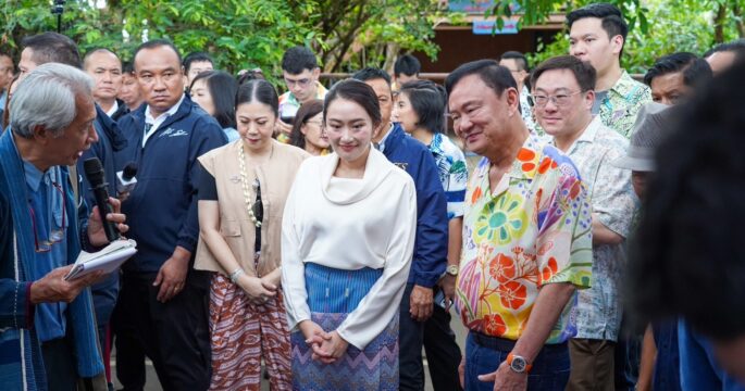 นายกฯ ควง “ทักษิณ” ร่วมงาน “ป๋าเวณีปี๋ใหม่เมืองสันกำแพง” ร่วมพิธีสระเกล้าดำหัวคุณย่า ปักตุงประจำวันเกิด ที่ชุมชนโหล่งฮิมคาว เผย รู้สึกผูกผันกับสันกำแพงเพราะเป็นบ้านเกิดพ่อ ก่อนช้อปสินค้าชุมชนทุกร้าน
