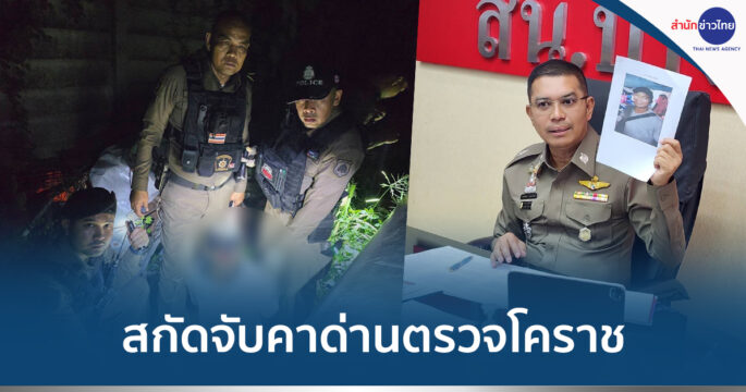 นครบาลสนธิกำลัง สภ.โพธิ์กลาง สกัดจับ “สันติ” อดีตนักมวย คาด่านตรวจโคราช ขณะหลบหนี พบอาวุธปืน 2 กระบอก กำลังคุมตัวมาสอบสวนที่ สน.บางซื่อ