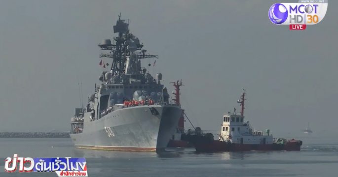 เรือพิฆาตและเรือลาดตระเวนติดขีปนาวุธนำวิถีของกองทัพเรือรัสเซียเข้าเทียบท่าที่กรุงมะนิลาในวันอาทิตย์ เพื่อเยือนสันถวไมตรีที่ฟิลิปปินส์