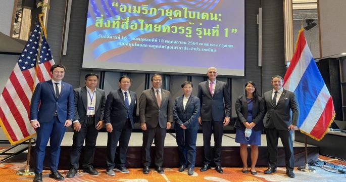 กรุงเทพฯ 16 พ.ย. – สถานทูตสหรัฐอเมริกาประจำประเทศไทยร่วมกับสมาคมนักข่าวนักหนังสือพิมพ์แห่งประเทศไทย (TJA) จัดการสัมมนาสำหรับผู้สื่อข่าวไทย เพื่อให้ข้อมูลเกี่ยวกับนโยบายต่างประเทศของสหรัฐ รวมทั้งสร้างความเข้าใจเชิงลึกว่าด้วยความร่วมมือระดับทวิภาคีทุกภาคส่วนระหว่าง 2 ประเทศ นายไมเคิล ฮีธ (Michael Heath) อุปทูตรักษาการแทนเอกอัครราชทูตสหรัฐ ฯประจำประเทศไทย กล่าวในพิธีเปิดการสัมมนา “นโยบายเอเชียตะวันออกเฉียงใต้ของสหรัฐ ภายใต้ประธานาธิบดีโจ ไบเดน” ว่าครั้งนี้เป็นครั้งแรกที่สถานทูตสหรัฐฯ ได้จัดโครงการร่วมกับสมาคมนักข่าวนักหนังสือพิมพ์แห่งประเทศไทย เพื่อให้ข้อมูลและจุดมุ่งหมายที่สำคัญของนโยบายการต่างประเทศของสหรัฐ โดยเฉพาะประเด็นที่เกี่ยวกับไทย ซึ่งเป็นพันธมิตรสนธิสัญญาที่เก่าแก่และยาวนานที่สุดของสหรัฐในเอเชีย ทั้งนี้ สถานทูตสหรัฐฯ ประจำประเทศไทย ถือเป็นสถานทูตใหญ่ที่สุดเป็นอันดับ 2 ในโลกของสหรัฐ รองจากกรุงแบกแดดในอิรัก โดยมีเจ้าหน้าที่และหน่วยงานของสหรัฐจำนวนมากประจำการปฏิบัติภารกิจภารกิจในประเทศไทย ตอกย้ำให้เห็นว่า กรุงเทพฯ เป็นศูนย์กลางของภูมิภาคเอเชียตะวันออกเฉียงใต้ และเป็นหุ้นส่วนที่แนบแน่นครอบคลุมภาคีทุกส่วนของไทย ด้านนายมงคล บางประภา นายกสมาคมนักข่าวนักหนังสือพิมพ์แห่งประเทศไทย กล่าวว่า งานสัมมนาครั้งนี้เป็นโครงการแรกที่สมาคมฯ จัดขึ้นหลังการผ่อนคลายมาตรการ ควบคุมโรคโควิด-19 โดยเชื่อมั่นว่าจากการสัมมนาครั้งนี้ ผู้สื่อข่าวไทยจะได้มุมมองเกี่ยวกับการดำเนินงานของสถานทูตสหรัฐฯ อย่างถูกต้องและครอบคลุมมากขึ้น นอกจากนี้ ดร. ประพีร์ อภิชาติสกล อาจารย์ประจำมหาวิทยาลัยศรีนครินทรวิโรฒและอุปนายกสมาคมอเมริกาศึกษาในประเทศไทย ยังได้กล่าวปาฐกถาเกี่ยวกับนโยบายการต่างประเทศของสหรัฐภายใต้การนำของประธานาธิบดีโจ ไบเดน […]