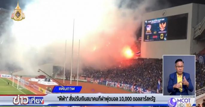“ฟีฟ่า” สั่งปรับเงินสมาคมกีฬาฟุตบอล 10,000 ดอลลาร์สหรัฐ กรณีจุดพลุแฟร์ในศึกฟุตบอลหญิงชิงแชมป์อาเซียน รุ่นอายุไม่เกิน 15 ปี ที่ชลบุรี