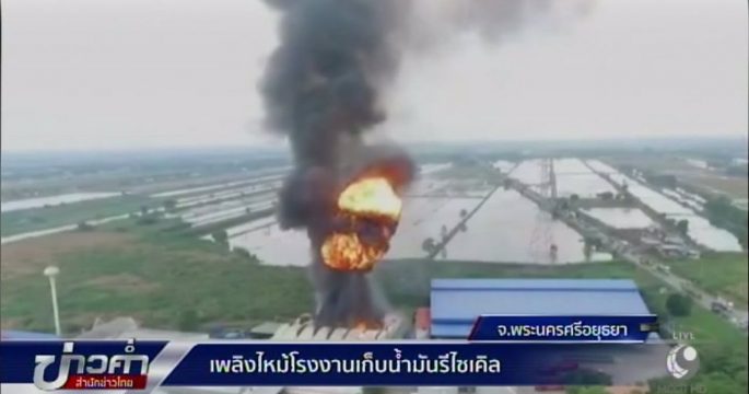 ผู้ว่าฯ อยุธยา สั่งปิดชั่วคราวโรงงานรีไซเคิลน้ำมันถูกไฟไหม้