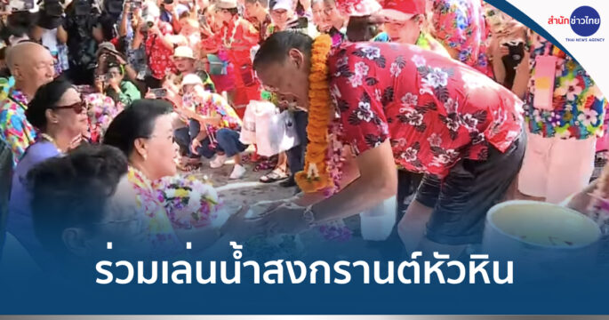 นายกฯ ร่วมเล่นน้ำสงกรานต์หัวหิน ประชาชนแห่ขอถ่ายรูป-ประแป้ง-สาดน้ำคึกคัก เจอชายชู 3 นิ้ว เดินตาม ก่อนถูกเจ้าหน้าที่รวบ