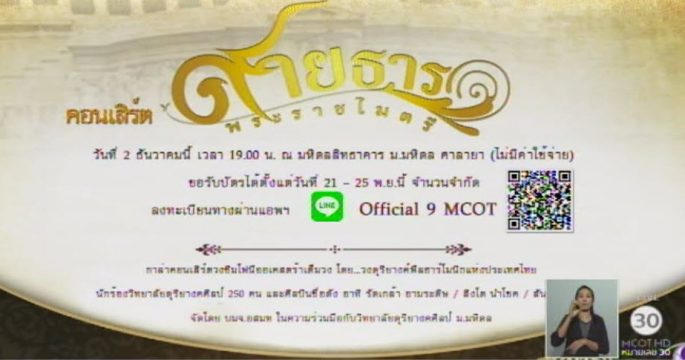 เปิดลงทะเบียนชมคอนเสิร์ตสายธารพระราชไมตรี ฟรีไม่มีค่าใช้จ่าย