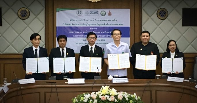 กรมการแพทย์ องค์การเภสัชกรรม ร่วมกับมหาวิทยาลัยแม่โจ้ และมหาวิทยาลัยเทคโนโลยีราชมงคลล้านนา วิจัย พัฒนา และผลิตสายพันธุ์กัญชาและกัญชง
