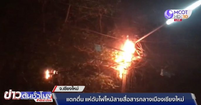 ไฟไหม้สายสื่อสารกลางเมืองเชียงใหม่ ทำให้สายสื่อสารละลาย ไหลลงไปตามพื้นถนน เจ้าหน้าที่ต้องตัดไฟฟ้าเป็นการชั่วคราว