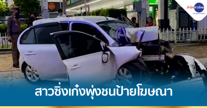 สาวซิ่งเก๋งพุ่งชนเสาป้ายโฆษณาริมถนนพหลโยธินขาเข้า ช่วงกิโลเมตรที่ 25 ย่านสายไหม เสียชีวิตคาที่ ส่วนแฟนหนุ่มนั่งมาด้วยบาดเจ็บ