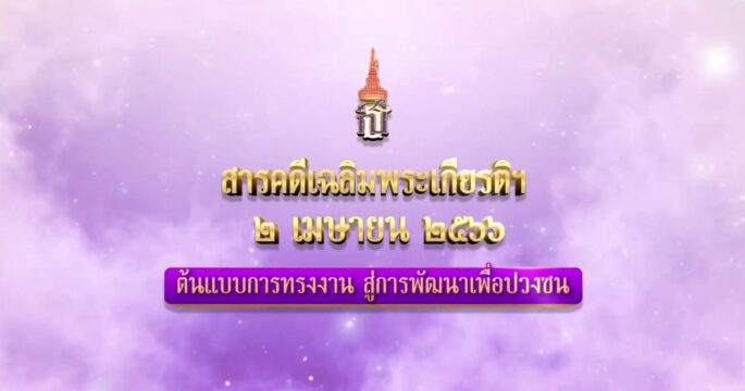 2 เม.ย. – เนื่องในโอกาสวันคล้ายวันพระราชสมภพ สมเด็จพระกนิษฐาธิราชเจ้า กรมสมเด็จพระเทพรัตนราชสุดาฯ สยามบรมราชกุมารี 2 เมษายน 2566 โทรทัศน์รวมการเฉพาะกิจแห่งประเทศไทย ขอเสนอสารคดีเฉลิมพระเกียรติ “ต้นแบบการทรงงาน สู่การพัฒนาเพื่อปวงชน”.