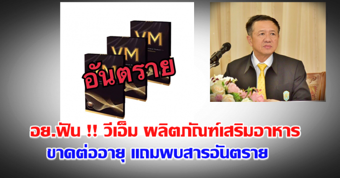 อย.เตือนอันตรายประชาชนอย่าซื้อมาบริโภค ‘วีเอ็ม’ ผลิตภัณฑ์เสริมอาหาร พบสารไซบูทรามีน เข้าข่ายเป็นอาหารไม่บริสุทธิ์