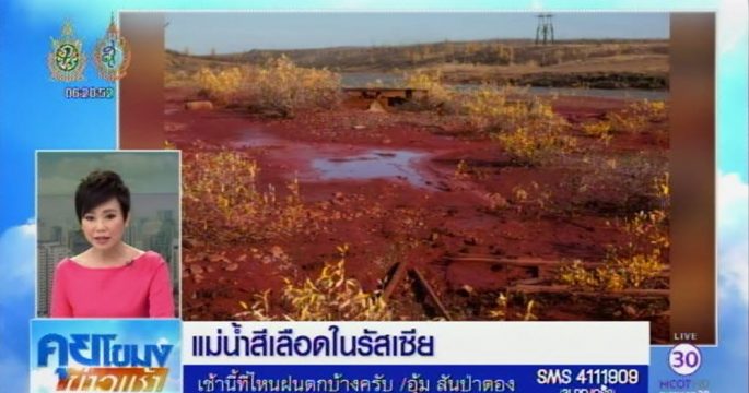 แม่น้ำสายหนึ่งทางตอนเหนือแคว้นไซบีเรียของรัสเซีย กลายเป็นสีแดงเลือดนก คาดเกิดจากการรั่วไหลของสารเคมีขยะนิกเกิลกับทองแดงเข้มข้นจากโรงงานอุตสาหกรรม