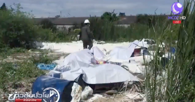 เจ้าหน้าที่เข้าตรวจสอบบริเวณหมู่บ้านแห่งหนึ่งใน อ.สามพราน จ.นครปฐม พบสารเคมีประเภทติดไฟง่าย ลักษณะสีเหลืองข้นและเหนียว อยู่ในถังขนาด 200 ลิตร ประมาณ 30 ถัง