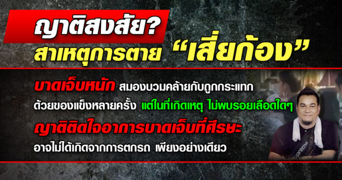 ญาติ “เสี่ยก้อง” เจ้าของธุรกิจร้านเกาลัดชื่อดัง จ.กาญจนบุรี เตรียมแจ้งความเอาผิดสาวคนสนิท รวมถึงน้องชาย หลังมีคลิปเผยแพร่เหตุการณ์ขณะ “เสี่ยก้อง” ตกจากรถของสาวคนสนิท ทั้งยังเชื่อว่าไม่น่าจะเสียชีวิตจากอุบัติเหตุตกจากรถ ด้าน น.ส.เเหม่ม พร้อมน้องชาย เข้าพบ “ทนายเดชา” ขอคำปรึกษาสู้คดี