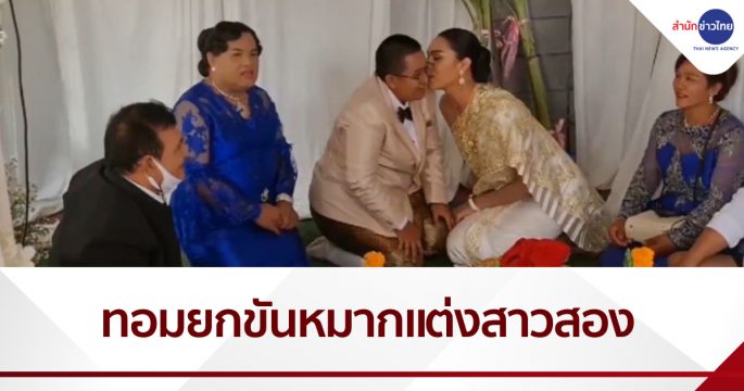 สาวทอมวัย 27 ปี ชาวภูเก็ต หอบสินสอดเงินสด 100,000 บาท ทองรูปพรรณ 6 บาท แหวนเพชร 2 วง สู่ขอสาวประเภทสองวัย 30 ปี ชาวพิษณุโลก หลังคบหาดูใจนาน 3 ปี มีเพื่อนๆ และญาติ ร่วมเป็นสักขีพยานคับคั่ง