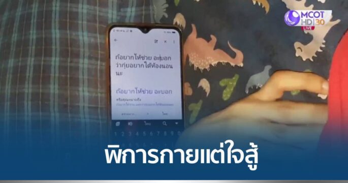 สาวพิการสู้ชีวิต วัย 32 ปี ใจเต็มร้อย แม้เคลื่อนไหวไม่ได้ แต่ก็หาวิธีจิ้มมือถือ ท่องไปในโลกกว้าง พัฒนาจนอ่านออกเขียนได้ ไลฟ์ขายสินค้าทางเฟซบุ๊ก หวังแบ่งเบาภาระครอบครัว