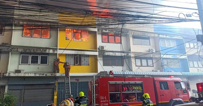 เกิดเหตุเพลิงไหม้โรงงานผลิตไม้ถูพื้นย่านโชคชัย 4 ลุกลามไปยังอาคารที่พักใหล้เคียงวอดอีกหลายห้อง ผอ.เขตลาดพร้าวประกาศเป็นพื้นที่อันตรายห้ามเข้า