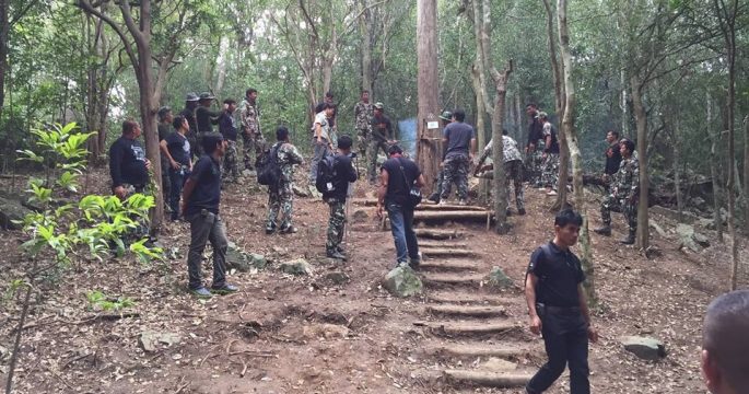 เจ้าหน้าที่ทดสอบความแข็งแรงของรางเลื่อนเกรินบันไดนาคสำหรับอัญเชิญพระโกศพระบรมศพ พระบาทสมเด็จพระปรมินทรมหาภูมิพลอดุลยเดช สู่ราชรถปืนใหญ่