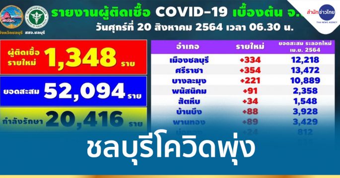 ชลบุรียอดโควิดพุ่ง 1,348 ราย เสียชีวิตเพิ่ม 10 ราย คณะกรรมการโรคติดต่อจังหวัด สั่งสำนักทะเบียนอำเภอและสำนักทะเบียนท้องถิ่นทุกแห่งงดบริการงานทะเบียน เว้นแจ้งเกิด แจ้งตาย