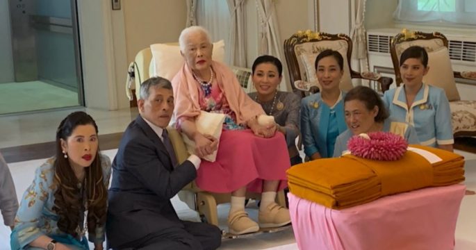 สำนักพระราชวัง เผยแพร่ภาพเมื่อเวลาบ่าย สมเด็จพระนางเจ้าสิริกิติ์ พระบรมราชินีนาถ พระบรมราชชนนีพันปีหลวง พระบาทสมเด็จพระเจ้าอยู่หัว และสมเด็จพระนางเจ้าฯ พระบรมราชินี เสด็จออกในโอกาสที่สมเด็จพระบรมราชชนนีพันปีหลวง ทรงบำเพ็ญพระราชกุศลเป็นการส่วนพระองค์