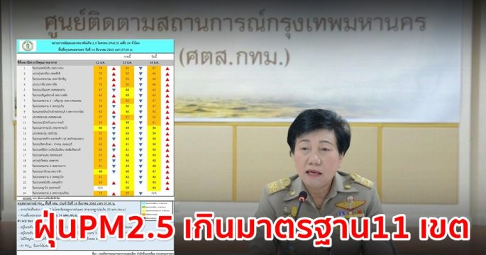 กทม.รายงานสถานการณ์ฝุ่นละอองประจำวันนี้ พบ11พื้นที่ ฝุ่นPM2.5 เกินค่ามาตรฐานเริ่มมีผลกระทบต่อสุขภาพ เพิ่มความถี่ ล้างทำความสะอาดถนน ทางเท้า