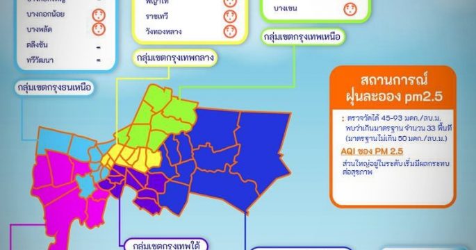 ผลตรวจวัด PM2.5 ในพื้นที่ กทม.เช้านี้อยู่ในระดับเริ่มมีผลกระทบต่อสุขภาพ 33เขต ออกนอกอาคารควรสวมหน้ากากอนามัย