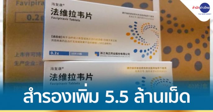 องค์การเภสัชกรรมเพิ่มการสำรองยาฟาวิพิราเวียร์อีก 5.5 ล้านเม็ด เพื่อกระจายยาไปสำรองในสถานพยาบาลตามพื้นที่ต่างๆ ทั่วประเทศ ให้ผู้ป่วยสามารถเข้าถึงยา มีใช้อย่างต่อเนื่องและรักษาได้ทันท่วงที
