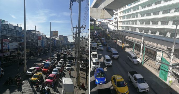 การจราจรเช้านี้ (3 ก.ค.) การจราจรมุ่งหน้าสำโรง ทั้งฝั่ง ถ.สุขุมวิท และ ถ.เทพารักษ์ ติดขัดยาว ขณะที่ ถ.ลาดพร้าว ขาเข้า บริเวณแยกโชคชัย 4 ติดขัดหนักมาก