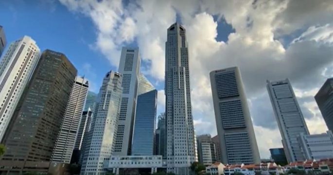 ย่านธุรกิจที่คึกคักของสิงคโปร์กลายเป็นเมืองร้าง เนื่องจากสถานที่ทำงานส่วนใหญ่ถูกปิด เพื่อสกัดการแพร่กระจายของโรคติดเชื้อไวรัสโคโรนา 2019 หรือโควิด-19