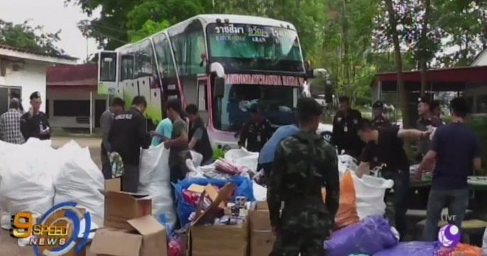 ตำรวจ-ทหารสนธิกำลังสกัดจับรถโดยสาร สายนครราชสีมา-ตลาดโรงเกลือ บนถนนข้าง สภ.คลองลึก จ.สระแก้ว ลักลอบขนสินค้าละเมิดลิขสิทธิ์จากตลาดโรงเกลือ