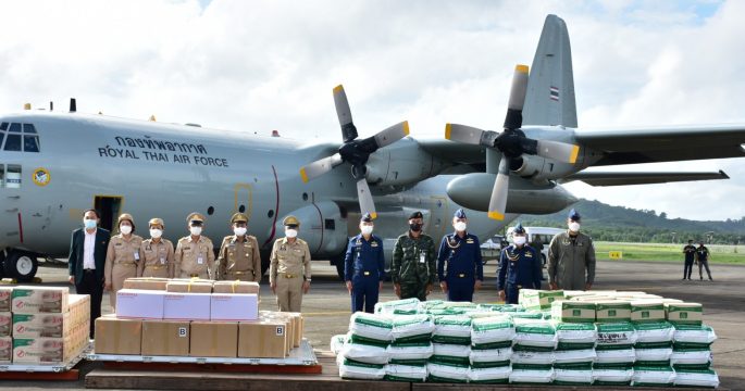 กองทัพอากาศสนับสนุนเครื่องบินลำเลียง C 130 .oโครงการ “เชื่อมโยงสินค้าและผลิตภัณฑ์ทางการเกษตร” ไม่ผ่านพ่อค้าคนกลาง ระหว่างจังหวัดระนอง-บุรีรัมย์ สู้ภัย COVID-19