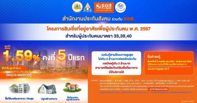 ธอส.กระตุ้นอสังหาริมทรัพย์ส่งท้ายปี จัดสินเชื่อดอกเบี้ย 0.72%