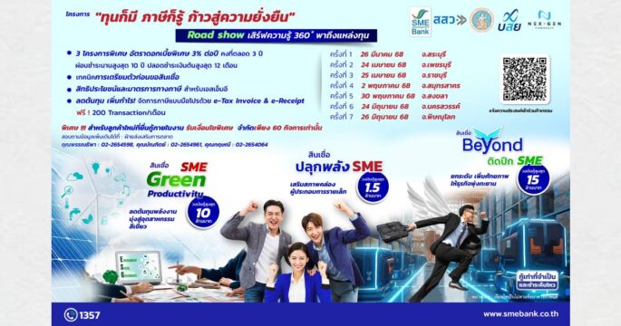 กรุงเทพฯ 30 มิ.ย. – SME D Bank ลงใต้จัดเต็มโปรโมชันเพื่อเอสเอ็มอีไทยในงาน “มหกรรมการเงินหาดใหญ่” ยกทัพสินเชื่อดอกเบี้ยพิเศษ 3% ต่อปี ควบคู่ ช่วยพัฒนายกระดับธุรกิจครบวงจร ธนาคารพัฒนาวิสาหกิจขนาดกลางและขนาดย่อมแห่งประเทศไทย (ธพว.) หรือ SME D Bank ร่วมงาน “มหกรรมการเงินหาดใหญ่” ครั้งที่ 15 (MONEY EXPO 2025 HATYAI) ระหว่างวันที่ 4-6 กรกฎาคม 2568 ณ บูธ F3 หาดใหญ่ฮอลล์ ชั้น 5 เซ็นทรัล หาดใหญ่ จ.สงขลา ยกขบวนผลิตภัณฑ์สินเชื่อครอบคลุมทุกกลุ่ม ตอบโจทย์ทุกความต้องการผู้ประกอบการเอสเอ็มอี ไฮไลท์ คือ สินเชื่ออัตราดอกเบี้ยพิเศษเพียง 3% ต่อปี คงที่ตลอด 3 ปีแรก ผ่อนชำระนานสูงสุด 10 ปี ปลอดชำระหนี้เงินต้นสูงสุด […]