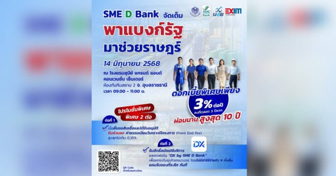 SME D Bank ให้สินเชื่อดอกเบี้ยต่ำเพียง 3%