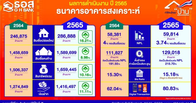 ธอส. เผยผลดำเนินงานปี 65 ปล่อยสินเชื่อใหม่ได้สูงกว่าเป้า 26.70%