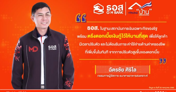 6 เดือนแรกของปี 65 ธอส. ปล่อยสินเชื่อใหม่ 1.35 แสนล้านบาท