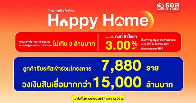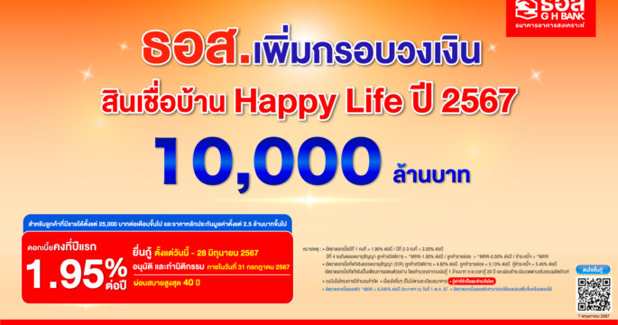 ธอส. เพิ่มกรอบวงเงินสินเชื่อบ้าน Happy Life เป็น 20,000 ล้านบาท