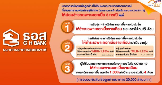 ธอส.จัดทำ“มาตรการช่วยเหลือลูกค้าที่ได้รับผลกระทบศรษฐกิจและการแพร่ระบาดของโควิด-19 ให้ชำระเฉพาะดอกเบี้ย