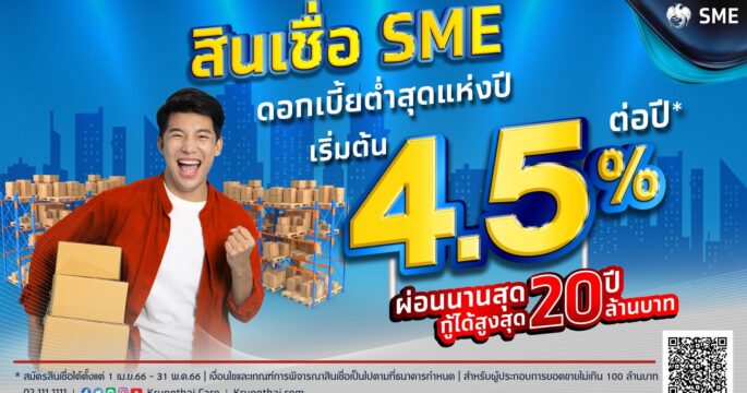กรุงเทพฯ 3 เม.ย.- ที่สุดแห่งปี! กรุงไทยออก “สินเชื่อ SME” ดอกเบี้ยต่ำสุดร้อยละ 4.5 ผ่อนนาน 20 ปี ติดปีก SME เติบโตยั่งยืน