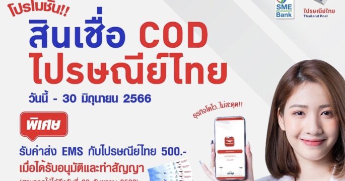 กรุงเทพฯ 2 พ.ค.- SME D Bank หนุนเอสเอ็มอีค้าขายออนไลน์ ผ่าน “สินเชื่อ COD ไปรษณีย์ไทย” รับเงินแสน แถมGift Voucher 500 บาท ด่วน! ภายใน 30 มิ.ย. นี้