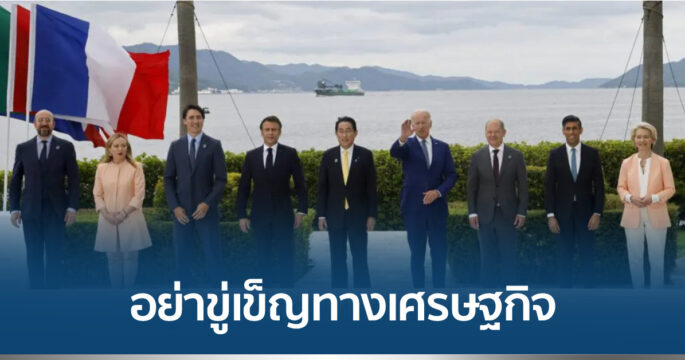 ฮิโรชิมะ 20 พ.ค.- ผู้นำกลุ่มประเทศอุตสาหกรรมชั้นนำ 7 ประเทศหรือจี 7 (G7) เรียกร้องทุกประเทศทั่วโลกงดใช้การขู่เข็ญทางเศรษฐกิจเป็นเครื่องมือเพื่อดำเนินการตามวัตถุประสงค์ทางการเมือง โดยระบุว่ามีเศรษฐกิจประชาธิปไตยบางแห่งได้รับผลกระทบเชิงลบจากการที่ประเทศเผด็จการใช้วิธีการนี้ แถลงการณ์ของผู้นำจี 7 ที่แถลงในวันนี้ ซึ่งเป็นวันที่ 2 ของการประชุมสุดยอดเป็นเวลา 3 วันที่เมืองฮิโรชิมะของญี่ปุ่นระบุว่า จี 7 จะร่วมกันสร้างหลักประกันว่า ความพยายามนำการพึ่งพาทางเศรษฐกิจมาใช้เป็นอาวุธ ด้วยการบีบให้สมาชิกจี 7 และหุ้นส่วน รวมถึงเศรษฐกิจขนาดเล็กต้องเชื่อฟังและทำตาม จะล้มเหลวและต้องรับผลที่ติดตามมา สำนักข่าวเกียวโดนิวส์ของญี่ปุ่นตั้งข้อสังเกตว่า เนื้อความดังกล่าวดูเหมือนบ่งชี้ไปที่จีน แถลงการณ์ยังได้ย้ำถึงความสำคัญของการส่งเสริมห่วงโซ่อุปทานสำหรับการผลิตวัสดุสำคัญทางอุตสาหกรรม เช่น เซมิคอนดักเตอร์ และดำเนินมาตรการที่จำเป็นเพื่อตอบโต้การใช้มาตรการจำกัดทางการค้าแต่ฝ่ายเดียว ผู้นำจี 7 ยืนยันว่า จะเพิ่มความช่วยเหลือด้านพลังงานและการพัฒนาให้แก่ประเทศเกิดใหม่และประเทศกำลังพัฒนา ในช่วงที่มีความกังวลมากขึ้นว่าจีนกำลังใช้ “การทูตกับดักหนี้” ด้วยการนำการปล่อยสินเชื่อมาใช้เป็นเครื่องต่อรองในการหาประโยชน์จากประเทศลูกหนี้ และเห็นพ้องกันว่าจะดำเนินมาตรการปกป้องความมั่นคงด้านอาหารที่ถูกคุกคามจากสงครามในยูเครน.-สำนักข่าวไทย