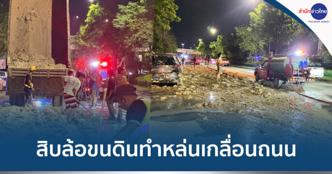20 ก.ค.- สิบล้อขนดินทำหล่นเกลื่อนถนนเทพรักษ์ ขาออก ลากยาวเกือบ 200 ม. รถยนต์ชาวบ้านจอดริมทางเสียหาย 10 คัน ล่าสุด จนท.เข้าทำความสะอาด เปิดการจราจรแล้ว 00.30 น. ศูนย์วิทยุอปพร.สายไหมรับแจ้ง มีรถขนดินโคลนทำดินหกหล่น ตกใส่รถยนต์ชาวบ้านที่จอดริมถนนเทพรักษ์ แขวงคลองถนน เขตสายไหม ตรวจสอบที่เกิดเหตุอยู่ช่วงถนนเทพรักษ์ ขาออก (เข้าจากถ.พหลโยธิน แยกวัชรพล) ระหว่าง ซ.เทพรักษ์ 11-13 เบื้องต้นรถยนต์เสียหายประมาณ 10 คัน ระยะทางยาว 200 ม. เมื่อเวลา 02.50 น. เจ้าหน้าที่รถน้ำเขต พร้อมด้วย อปพร.สายไหม ระดมกำลังอาสาฯ ช่วยกันกวาดถนนและล้างดินโคลน ล่าสุดการจราจรกลับมาใช้งานได้ตามปกติ ส่วนความเสียหายอยู่ระหว่างตรวจสอบ -สำนักข่าวไทย