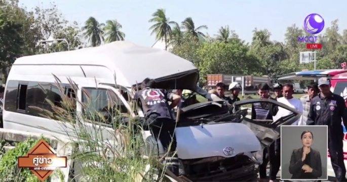 เกิดอุบัติเหตุรถตู้ขับตัดหน้ารถบรรทุก 10 ล้อ เป็นเหตุให้ผู้โดยสารนั่งมาในรถตู้เสียชีวิต 5 คน บาดเจ็บอีก 5 คน