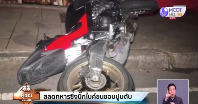 สลด! สิบเอกไปร่วมงานเลี้ยงส่งรุ่นพี่ หลังเลิกงานอาสาขี่บิ๊กไบค์ของรุ่นน้องที่เมา เพื่อนำมาเก็บไว้ให้ที่แฟลตทหารในกรมทหารราบ 11 แต่เกิดเสียหลักพุ่งชนขอบปูนข้างทาง กระเด็นตกรถลำตัวกระแทกเหล็กกั้นทางดับ