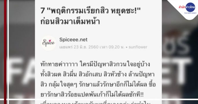 บนสังคมออนไลน์ แชร์ข้อความเตือนให้หลีกเลี่ยง 7 พฤติกรรมเรียกสิว แต่ข้อเท็จจริงเรื่องนี้เป็นอย่างไร ติดตามจากศูนย์ชัวร์ก่อนแชร์