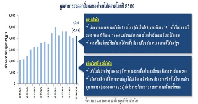 ศูนย์วิจัยกสิกรไทยคาดส่งออกสิ่งทอไทยไปตลาดโลกปีนี้โตร้อยละ 5 ไม่ต่ำกว่า 4,200 ล้านดอลลาร์สหรัฐ
