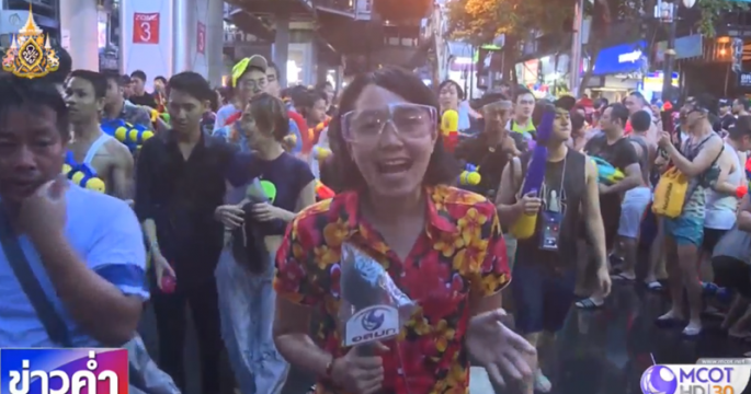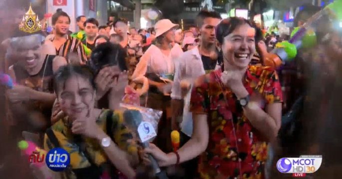 บรรยากาศการเล่นน้ำสงกรานต์ที่ ถ.สีลม ขณะนี้คับคั่งไปด้วยนักท่องเที่ยวทั้งชาวไทยและชาวต่างชาติ จนแทบจะไม่มีพื้นที่ให้เดินแล้ว ทุกคนต่างสาดน้ำใส่กันอย่างสนุกสนาน